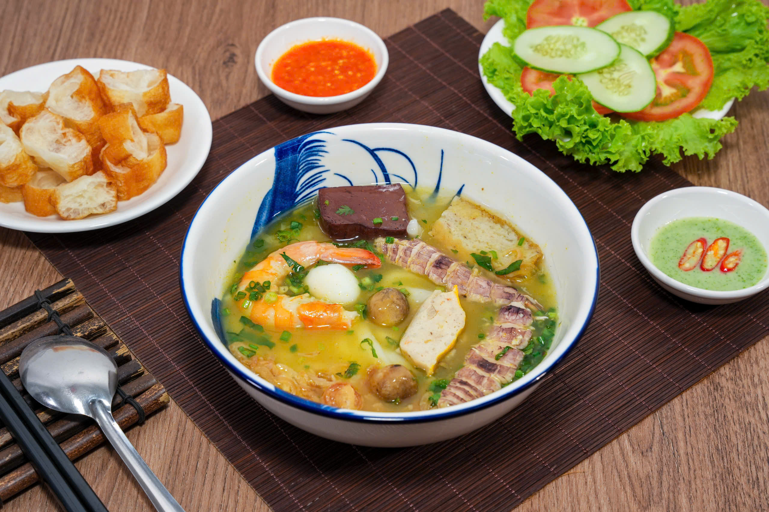 🍜 Nước lèo ngọt thanh, nấu từ xương và hải sản tươi, không bột ngọt