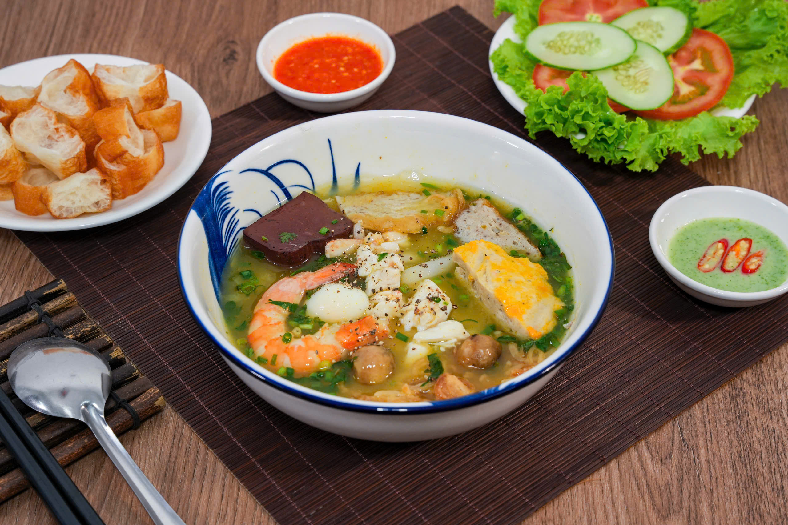 🍜 Nước lèo ngọt thanh, nấu từ xương và hải sản tươi, không bột ngọt